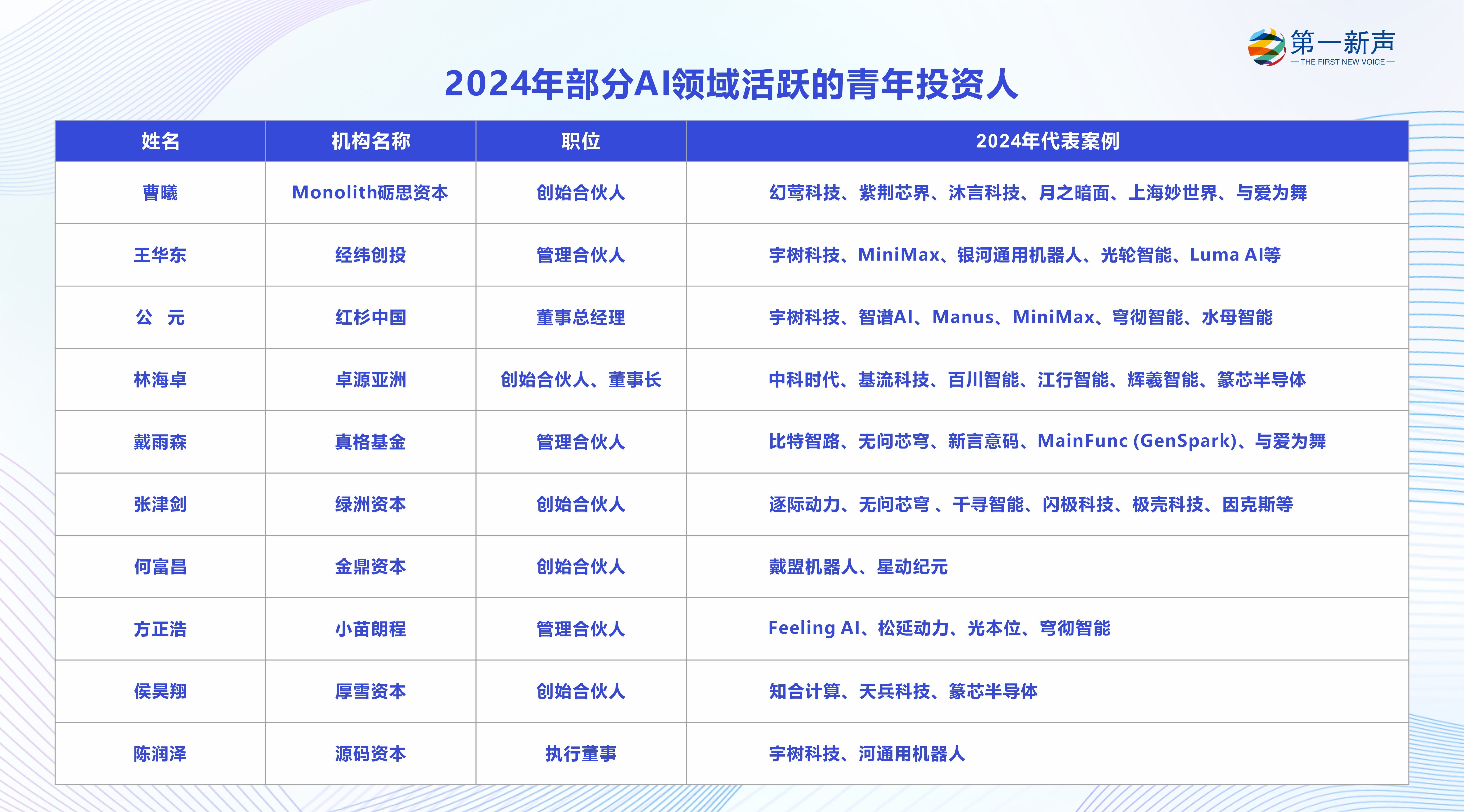 被喻为“第四次工业”的人工智能,第一新声调研发觉,机缘趋向是较着的,时势制豪杰,成为AI财产背后的“耐心投资人”。